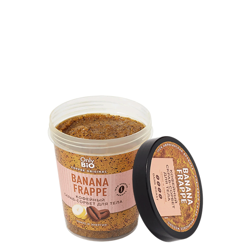 Only Bio Coffee Original Banana Frappe, təbii inqrediyentlərdən hazırlanmışdır. Kofe, dərinin qan dövranını artıraraq, hüceyrələrin yenilənməsini stimullaşdırır. Banan, dərinin nəm tarazlığını qorumağa kömək edir, yumşaq və elastik olmasını təmin edir. Bu skrab, həmçinin ölü dəri hüceyrələrini aradan qaldıraraq, dərinin daha parlaq görünməsini təmin edir.