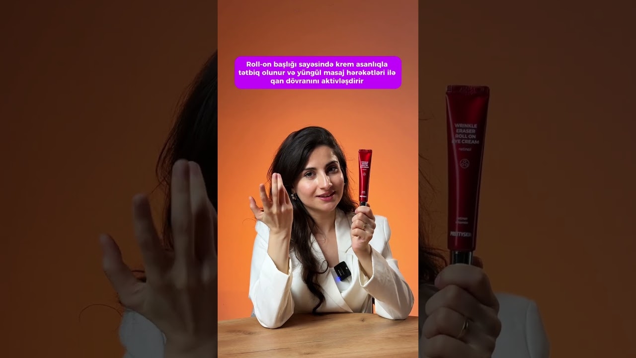 PrettyskinGöz Kremi Prettyskin Wrinkle Eraser Roll On Retinol 30 mlGöz Kremi Prettyskin Wrinkle Eraser Roll On Retinol 30 ml Cənubi Koreya istehsalı olan, yetişkin dəri üçün nəzərdə tutulmuş effektiv baxım məhsuludur. Xüsusilə göz ətrafındakı incə dəriyə yönəlmiş bu krem yaşlanma əlamətlərinin azalmasına kömək edir, dəriyə daha gənc və baxımlı görünüş qazandırır. Roll-on formatı sayəsində tətbiqi rahatdır və gündəlik istifadə üçün uyğundur.