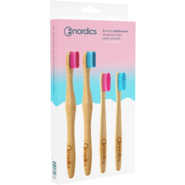 Набор зубных щеток для взрослых и детей Nordics Bamboo 4 шт.