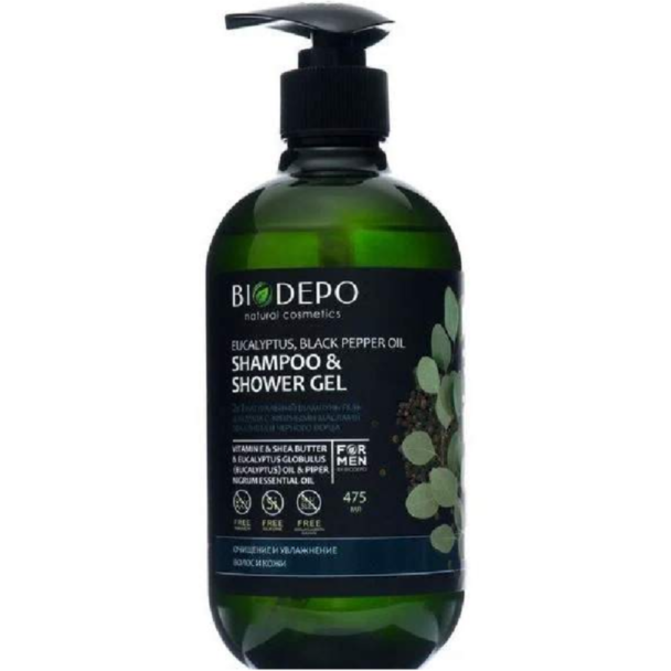 Гель для душа-шампунь для мужчин Biodepo с эвкалиптом и маслом перца 475 мл