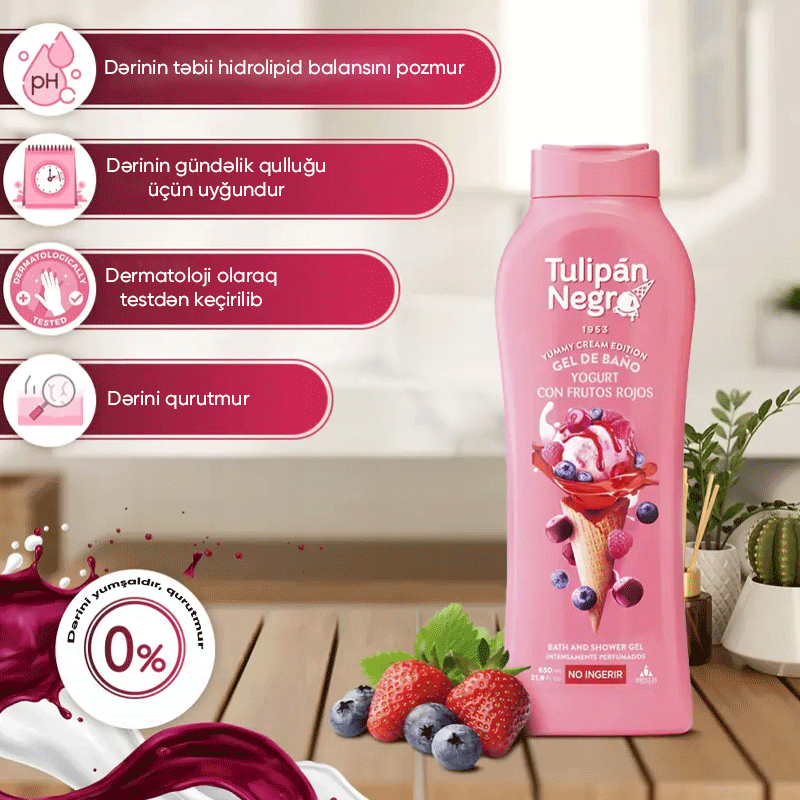 Гель для душа Tulipan Negro Yummy Cream Red Berries 650 мл