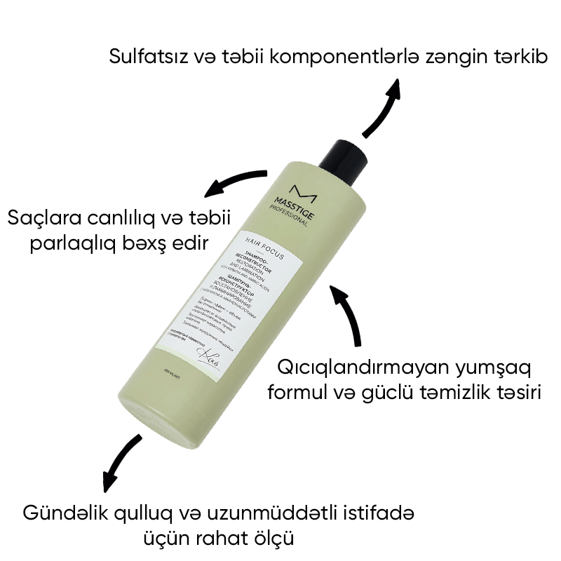 MASSTIGEШампунь Masstige Hair Focus без сульфатов 400 млПогрузись в мир нежного ухода с шампунем Masstige Hair Focus без сульфатов (400 мл). Он создан, чтобы бережно очищать и защищать твои волосы, сохраняя их естественную красоту и здоровье.