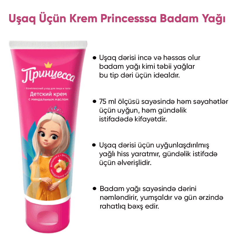 Не упусти возможность подарить своему ребенку заботу и комфорт, которые он заслуживает. Принцесса Миндальное масло — это идеальный выбор для каждого дня. Позволь своему малышу ощутить мягкость и нежность, которые дарит этот крем. Закажи его прямо сейчас и убедись в его чудесных свойствах!