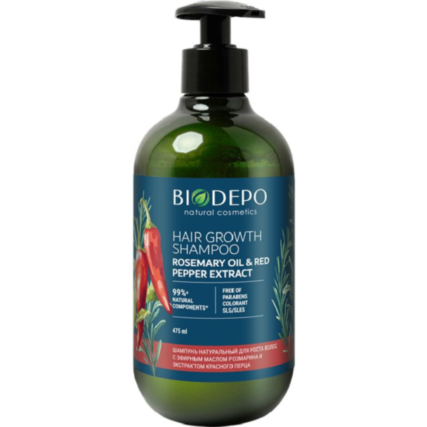 BiodepoŞampun Biodepo Təbii Saç Uzadıcı Rozmarin Efir Yağı və Qırmızı Bibər Ekstraktı ilə 475 mlŞampun Biodepo təbii saç uzadıcı rozmarin efir yağı və qırmızı bibər ekstraktı ilə 475 ml saç uzanmasını dəstəkləmək və saç dərisinə aktiv qulluq göstərmək üçün hazırlanmış maye formuldur. Məhsul Rusiyada istehsal olunur və bütün saç tipləri üçün uyğundur. Unisex istifadəyə uyğun olduğuna görə həm qadınlar, həm də kişilər üçün nəzərdə tutulub.